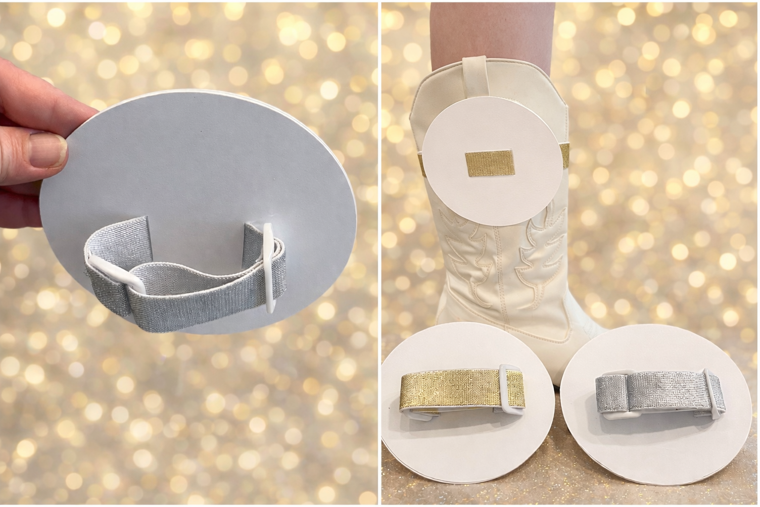 Each adjustable garter backer is made with a double layer of thick coverstock. Backers measuring 4 inches are paired with a 5/8 inch elastic, 5 and 6 inch backers are paired with a 1 inch elastic, and the 7 inch backer is paired with a 1.5 inch elastic, all available in silver or gold.